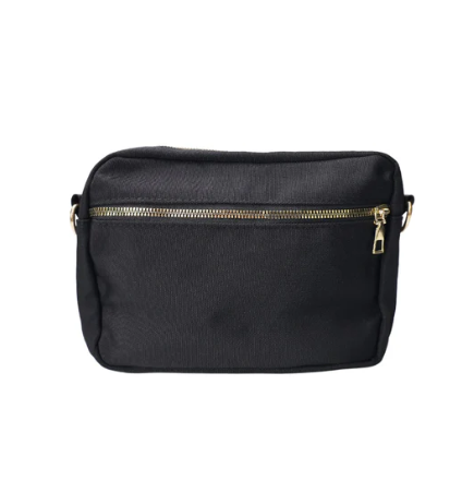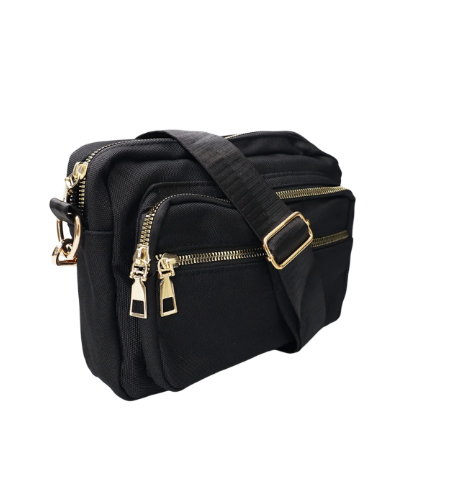Fin lækker taske i sort med guld lynlås, kan indeholde alle de nødvendige ting.