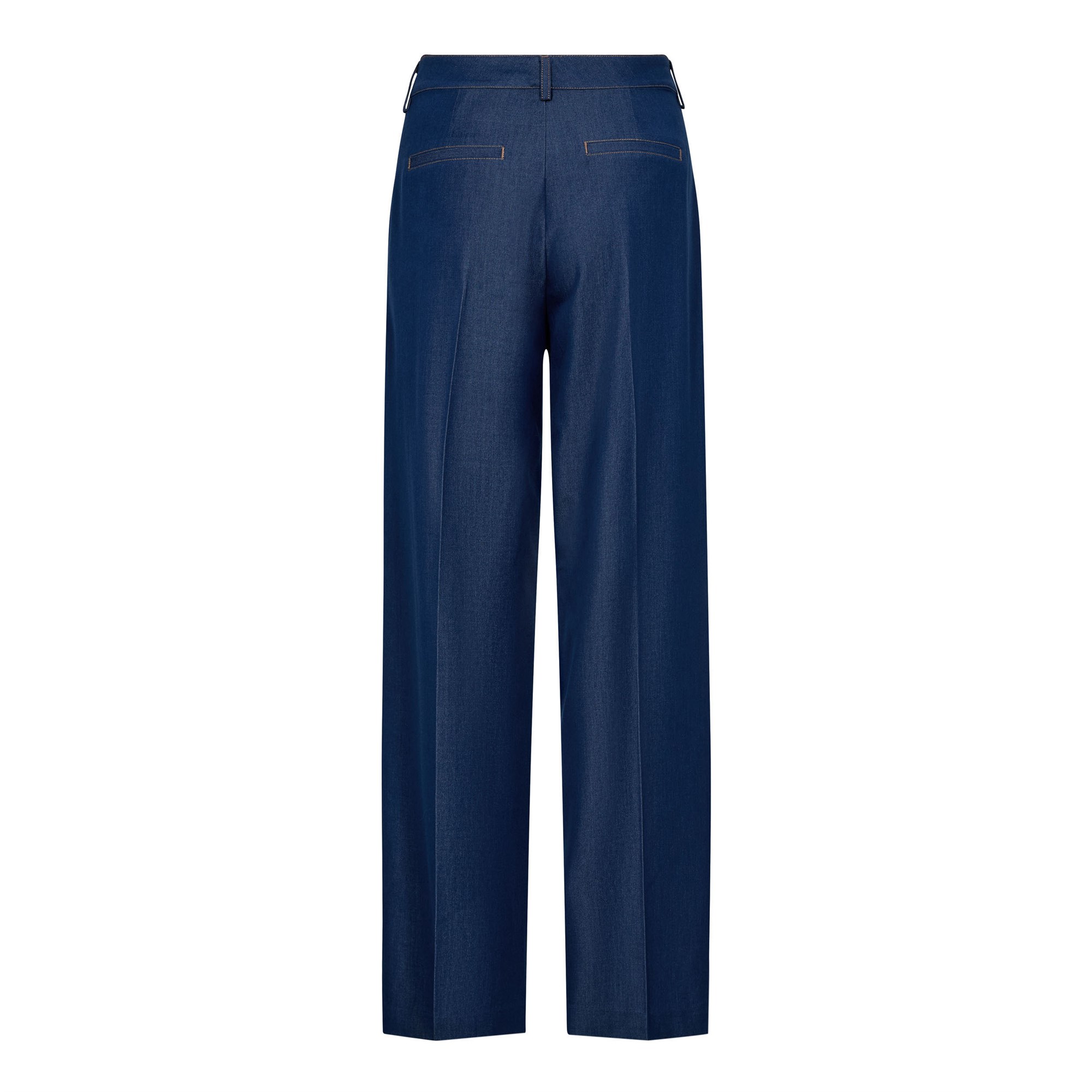 Lækre bløde vidde bukser i navyblå, og med brune syninger. Bukserne har lommer i siderne og snydelommer bag til.