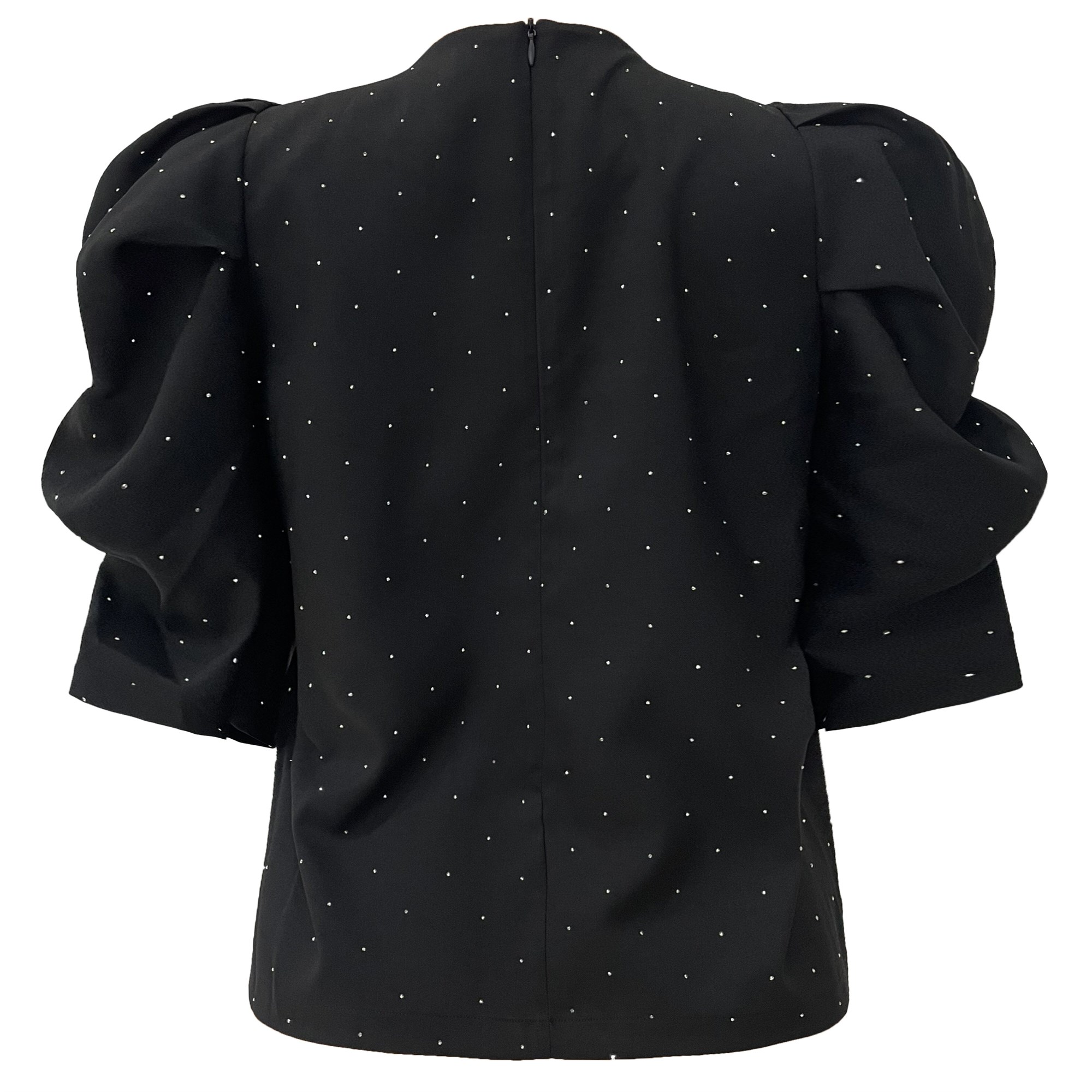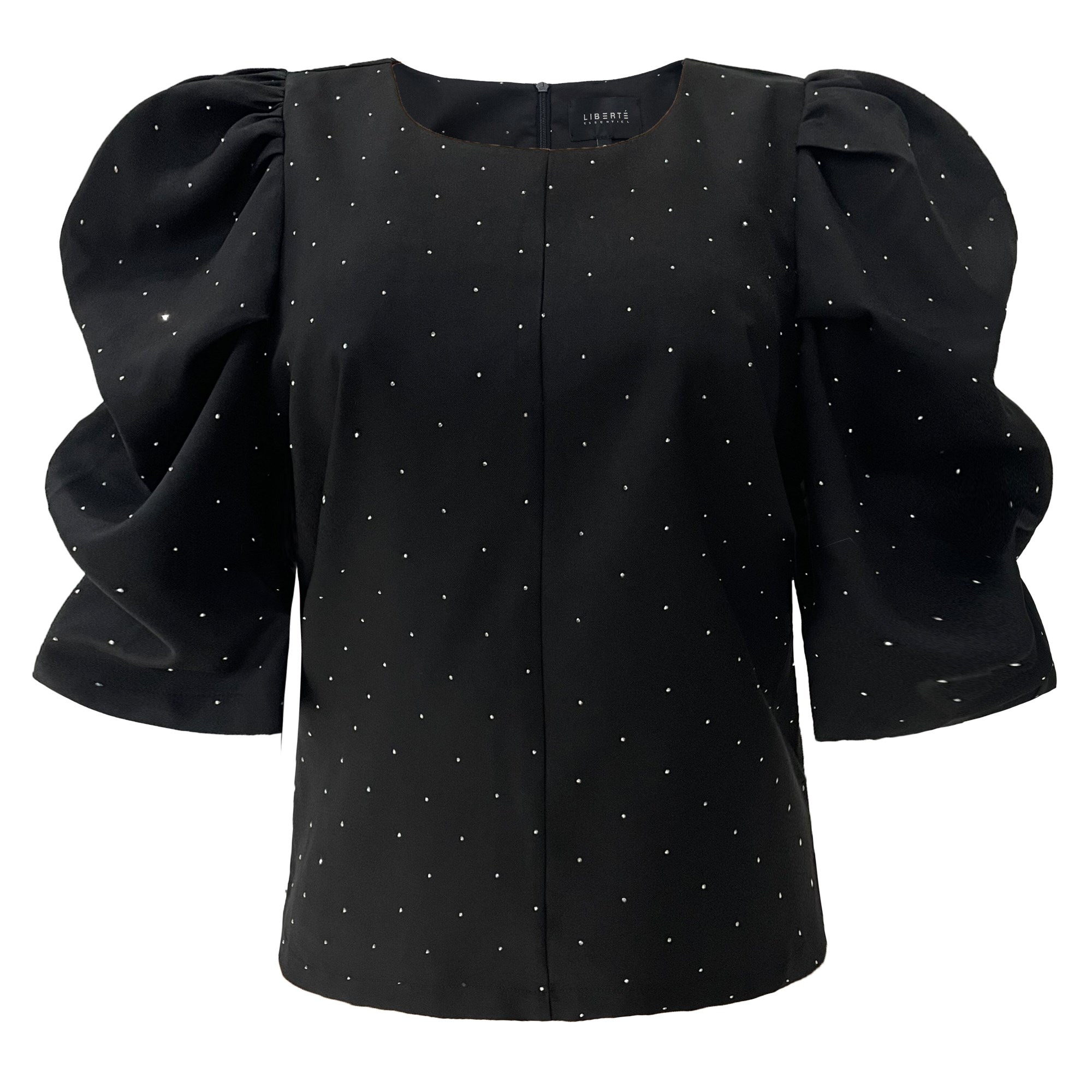 Liberté Winnie Bluse med 3/4 Puf Ærme, Sort med Rhinsten