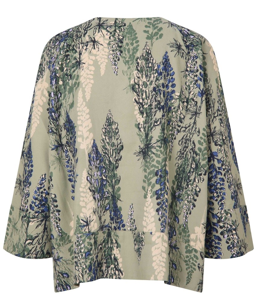Super flot bluse med et smukt mønster i grønne og blå nuancer fra Masai. Blusen har v-hals udskæring og et 3/4 langt ærme med slids for enden. Modellen er en løs oversize model der giver dig frihed til at bevæge dig. Det er en rummelig model, der passer alle kropstyper, da den falder løst omkring kroppen. Og der er plads til både barm og mave. Style den til et par sorte bukser eller et par jeans for et mere afslappet hverdagslook.