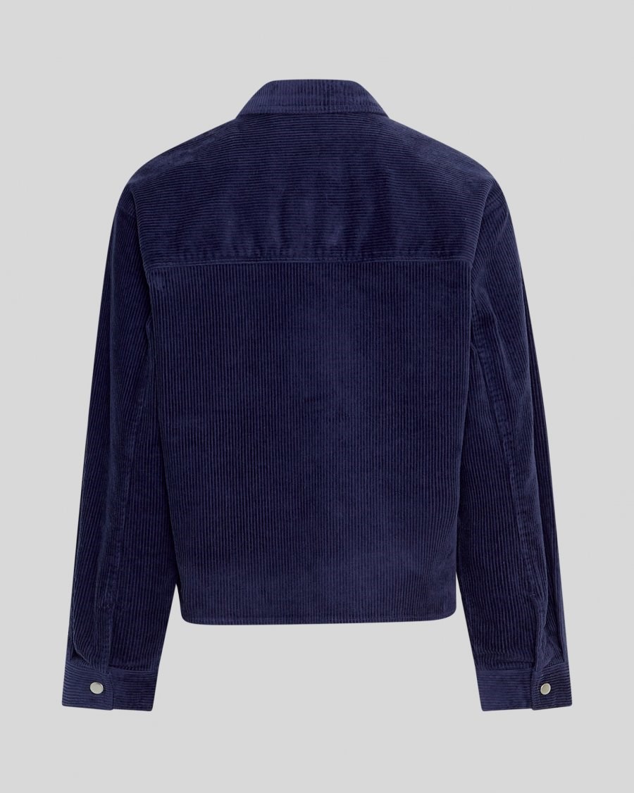 Lækker fløjl skjorte/ jakke. I en smuk mørkeblå farve. Skjorten har tryg knapper.