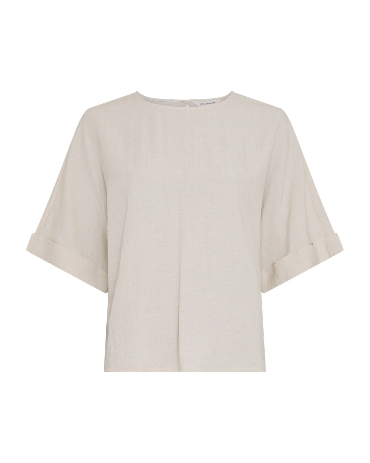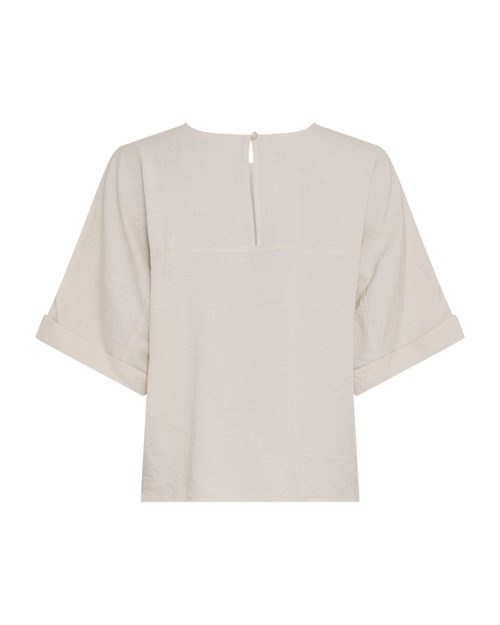 En enkel og meget anvendelig bluse model Daria fra MSCH. Blusen har et bredt 2/4 langt ærme med et lille opsmøg. Rund hals, som lukke med en enkelt knap i nakke. Pasformen er løs, og blusen kan style til det meste. Kvaliteten er en viskose kvalitet, så den er behagelig og komfortabel at have på -også på en lun sommerdag.