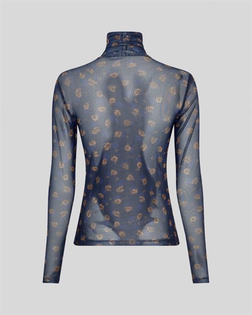 MSCH Ginie Illenora Meshbluse med Rullekrave, Blå Print