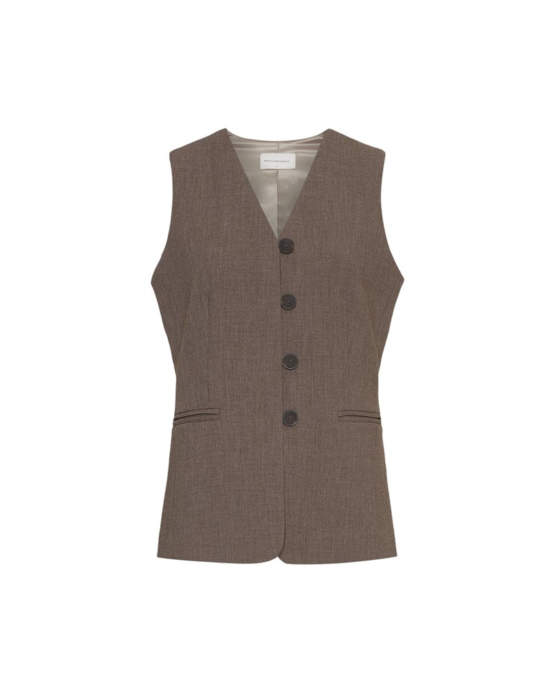 Smuk Vest bluse fra MSCH i en lækker brunlig farve. Dress den op med de matchene Habit bukser.