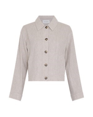 Lækker hør jakke med fine knapper og krave. Super flot over en kjole eller til et par jeans.
