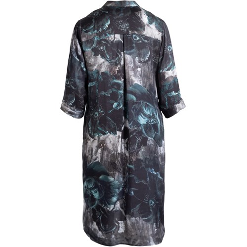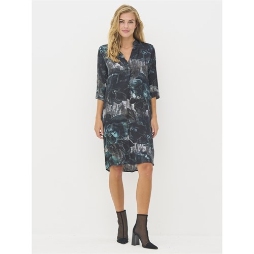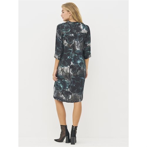Fin tunika kjole i 100% viskose med mønstret stof. Kjolen har tre kvart ærmer og går til knæene. Super fed til et par støvler, eller til et par fine sko til en god anledning.
