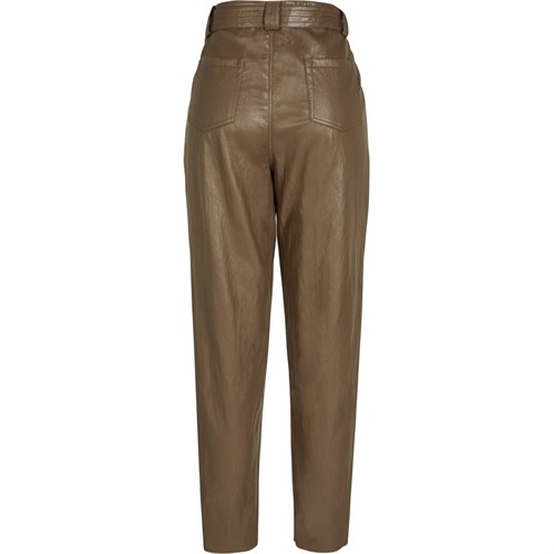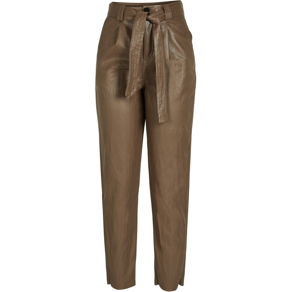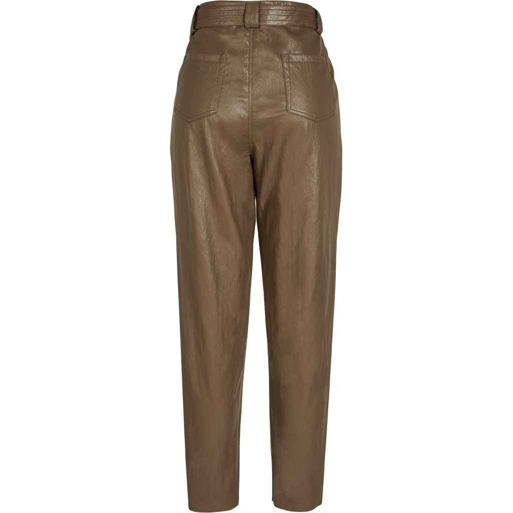 NÜ Bella Bukser med Bælte, Skindlook, Mørk Brun