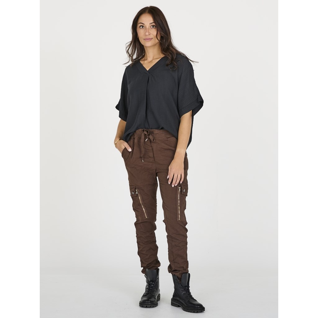 NÜ Carmen Bukser med elastik og stretch, Mørkebrun