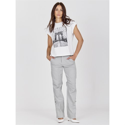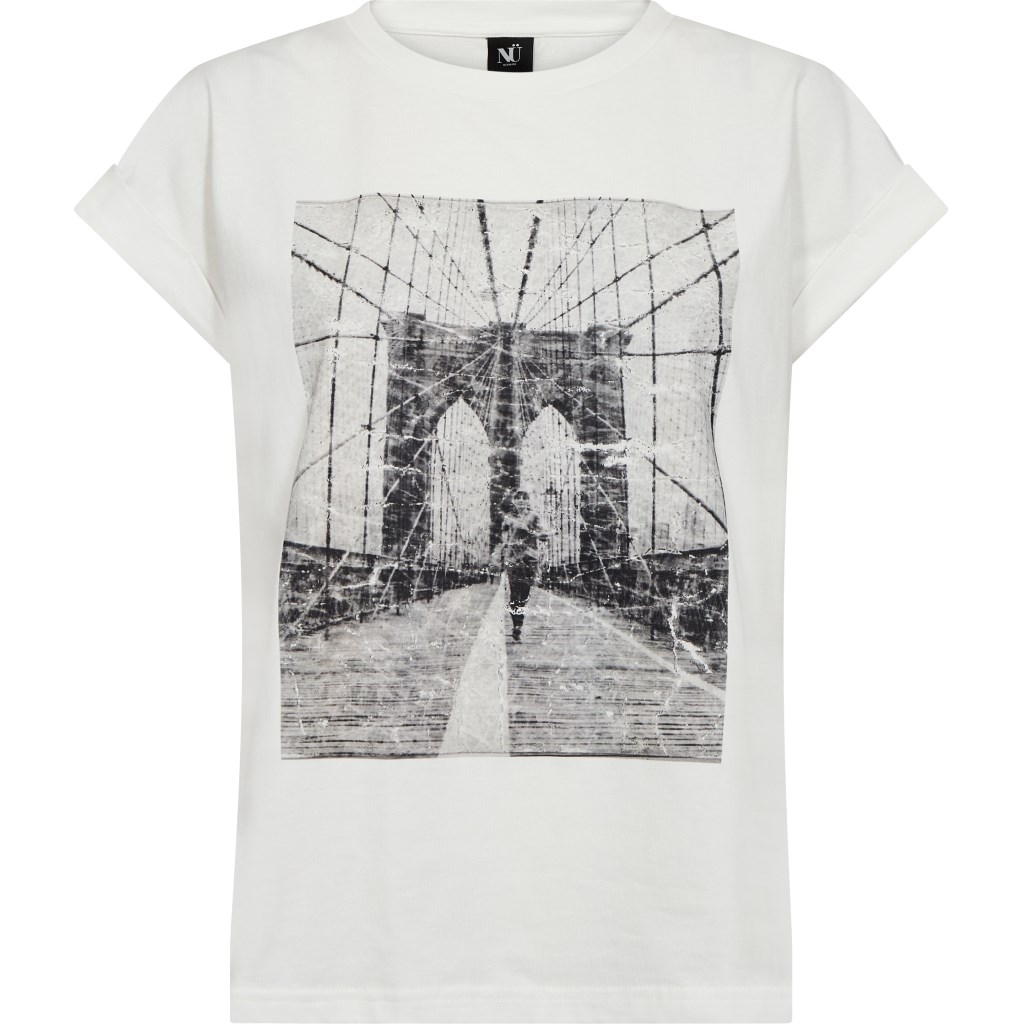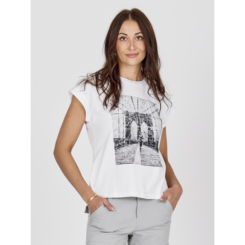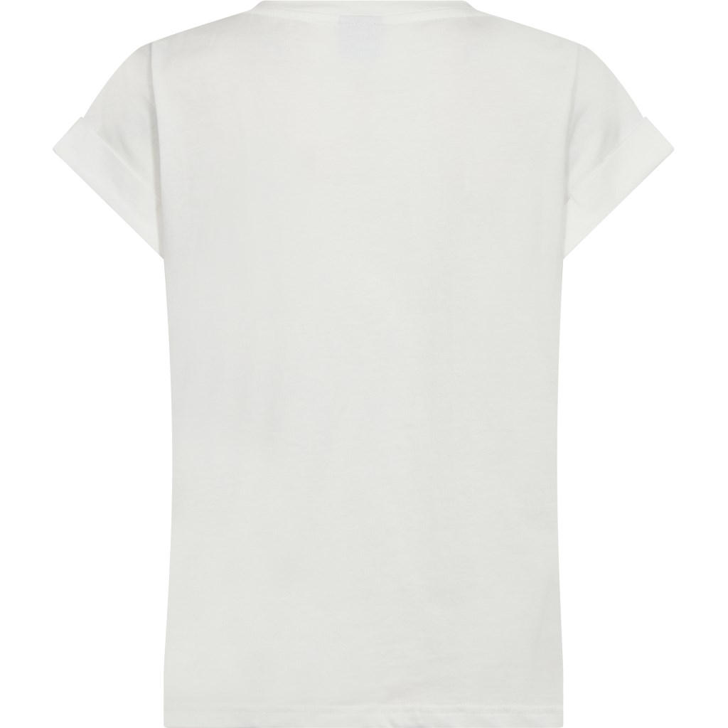 Rå kortærmet T-shirt med cool print. T-shirten er hvid og kan bruges til stort set alt, om det er nederdel jeans, eller shorts.