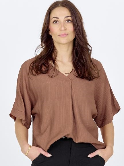 NÜ Cinda Bluse med Kort Ærme, V-hals, Marsala
