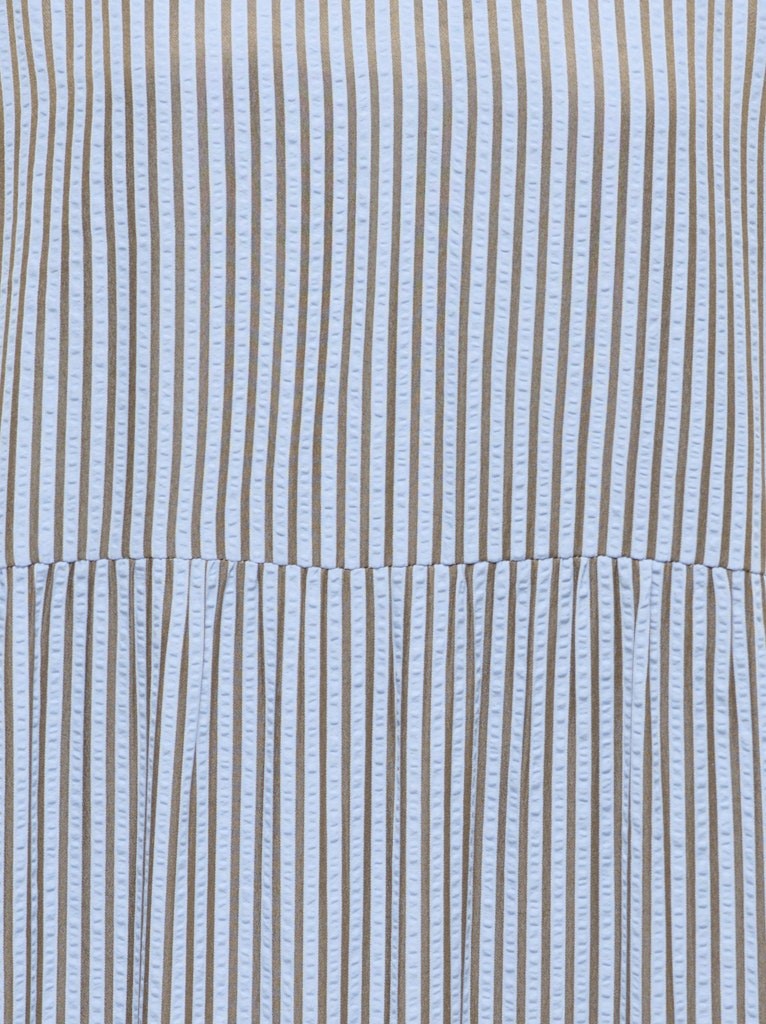 Super sød stribet sommerkjole fra Only, model Bari. Kjolen har v-hals, lille flæse på det korte ærme samt 2 overskæringer.