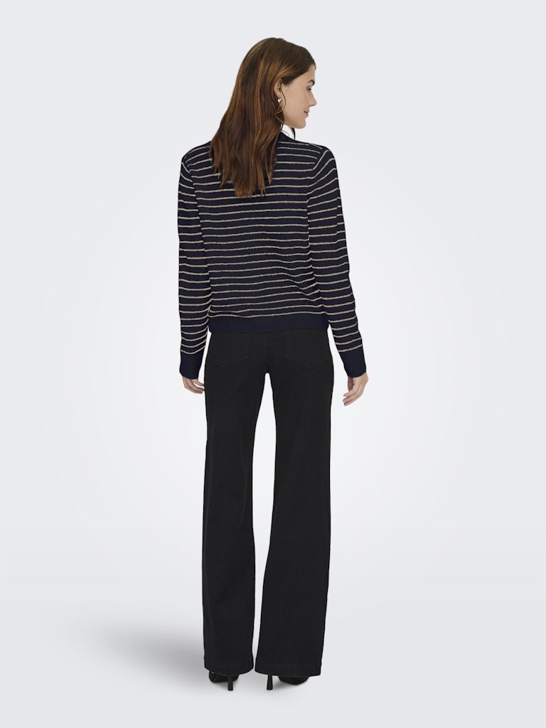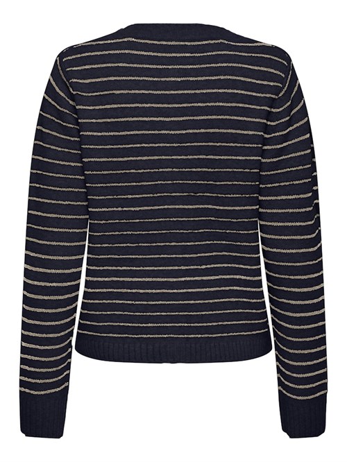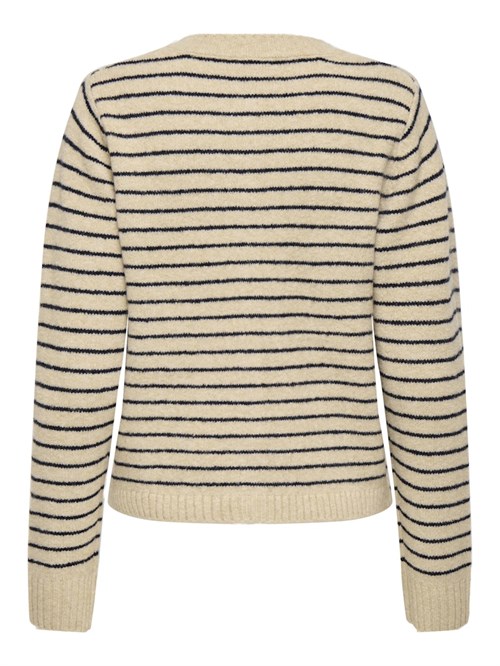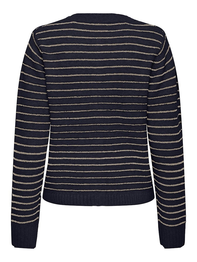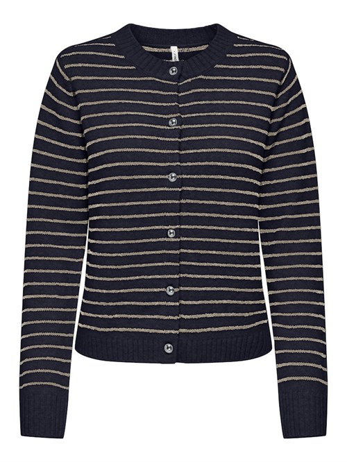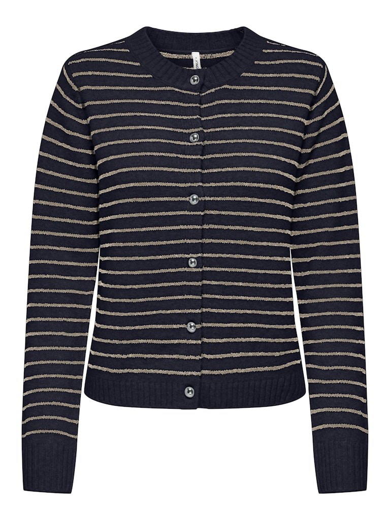 Lækker lun strik cardigan med striber fra Only. Cardiganen har rund hals, lange ærmer med rib for enden og den lukkes med fine sølv knapper. Strikken fås i 3 farve varianter, og kan styles til et par jeans og skjorte for et smart hverdags sæt.