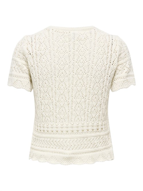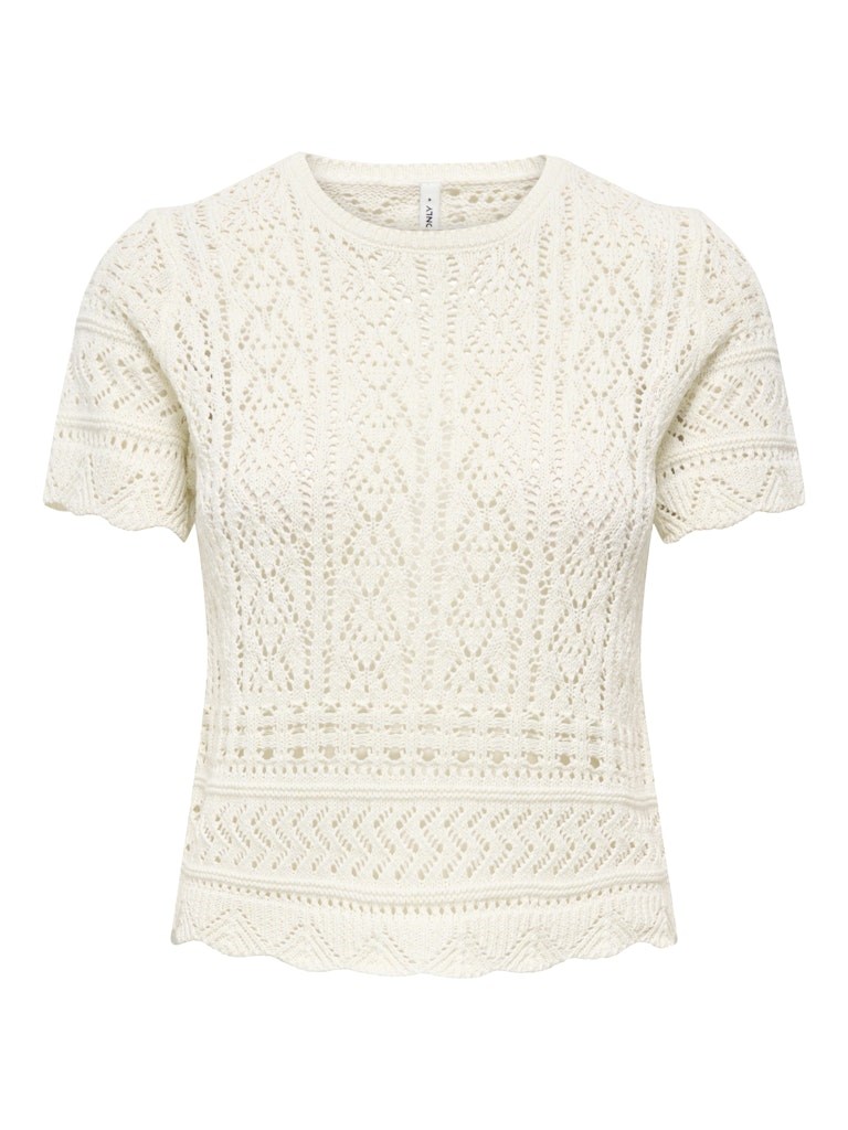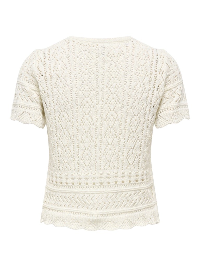 Only Elke Life Kortærmet Strik med hulmønster, Creme