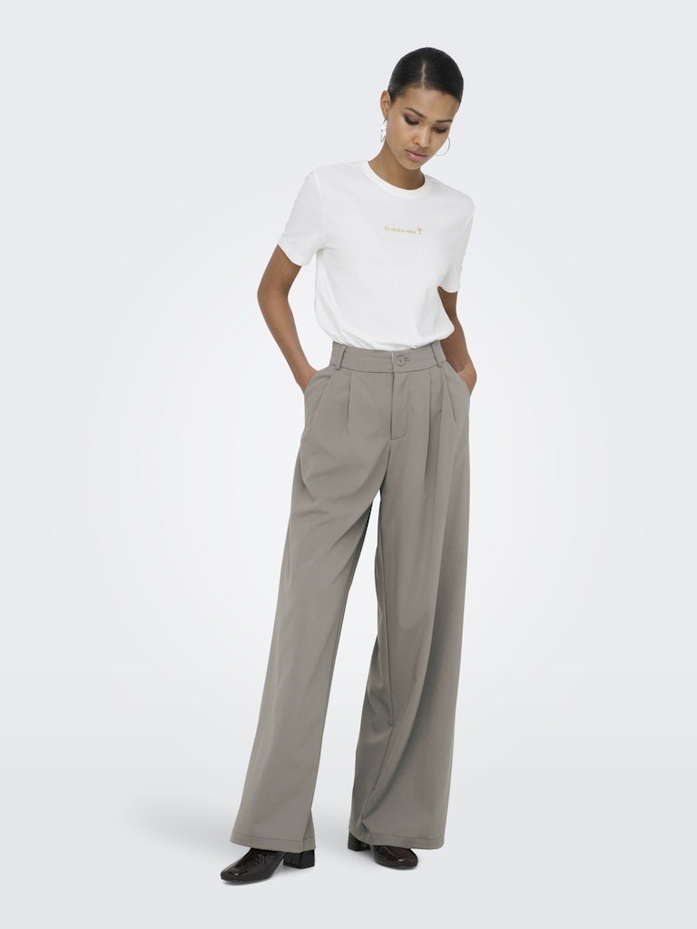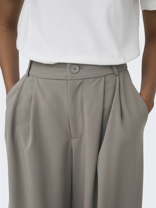 Super lækre bukser fra Only, med læg for oven i en flot Brunlig farve. Bukserne lukkes med en knap og lynlås, og har to lommer i siderne og snydelommer bag til. Brug den til hverdag med en T-shirt eller strik, eller style dem op med en fin bluse.