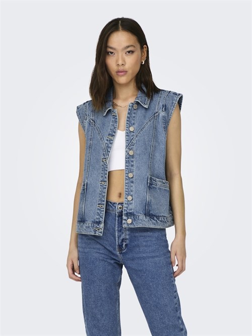 Only Kennedy Kortærmet Denim Vest, Lys Blå Denim