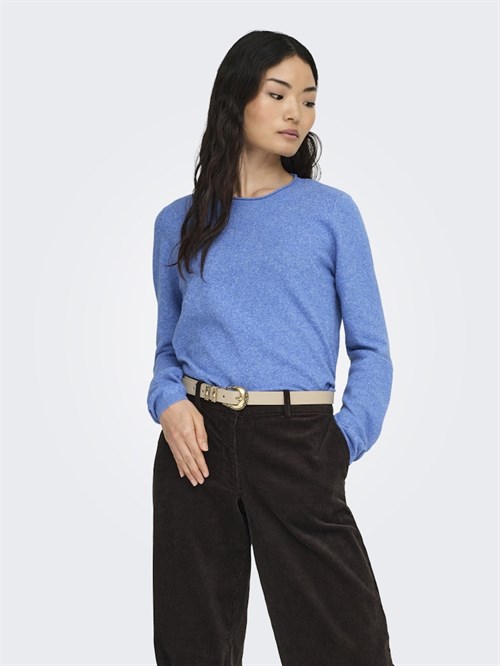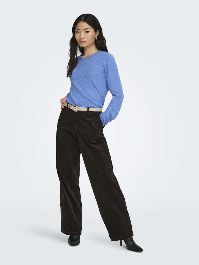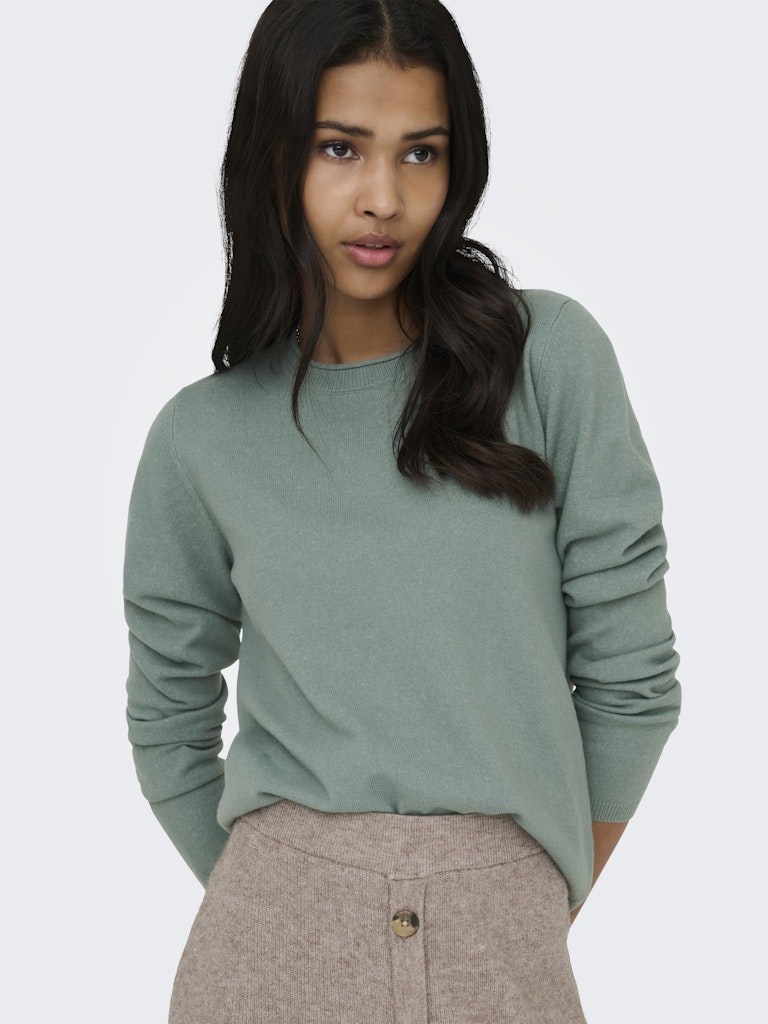 Only Loyal Strikbluse med lange ærmer, Rund hals