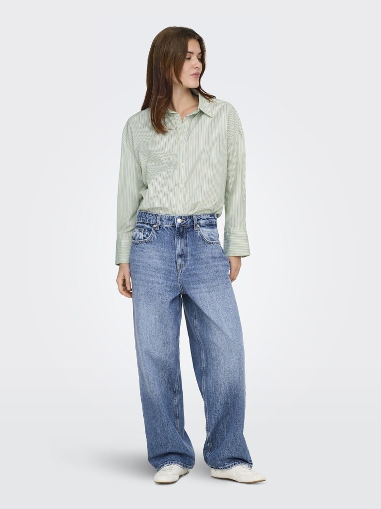 Lækre stribet skjorter i tre skønne forårs/sommer farver. Skjorte er almindelige i størrelsen og sidder super behageligt på kroppen. Skjorten har knapper hele vejen ned, og en fin krave. Sæt alle tre skjorter til et par jeans, og du har et pænt outfit uden at gøre en masse.