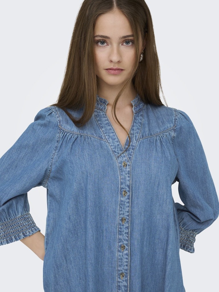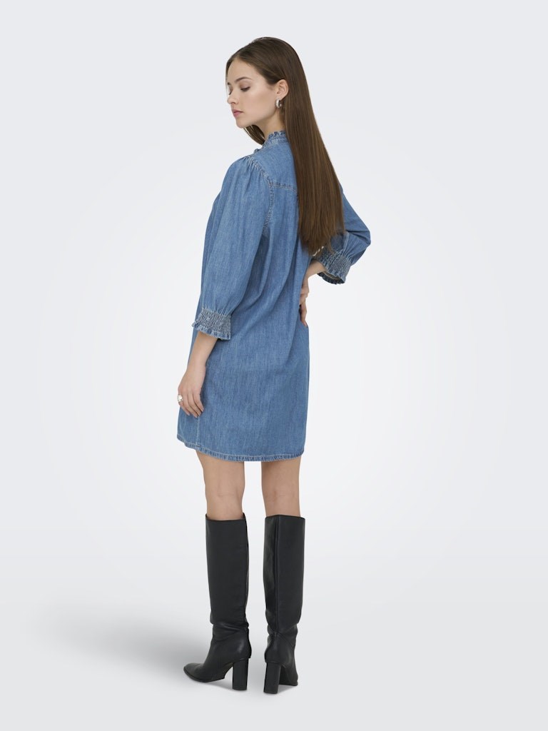 Only Raya 3/4 Blød Denim Kjole, Kort, Medium Blue