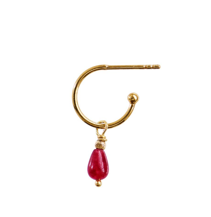 Stine A Love Drop Creol med Dråbeformet Rød Agat, Forgyldt
