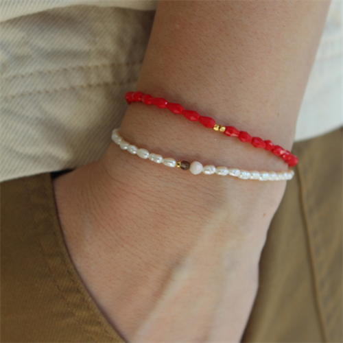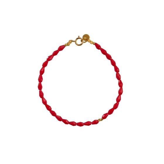 Skønt og farverigt armbånd med flotte røde ædelsten i forskellige former. Tilføj en farverig detalje til dit håndled og dit look med denne skønne eye-catcher.