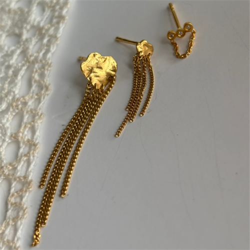 Stine A Three Dots with Mini Chain Ørering, Forgyldt