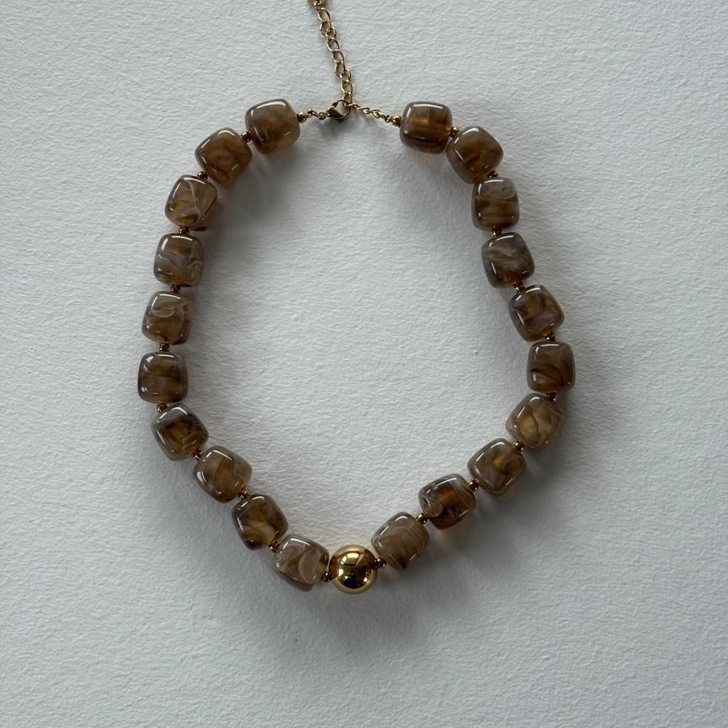 Three M Chunky Halskæde med kantet Perler, Champagne