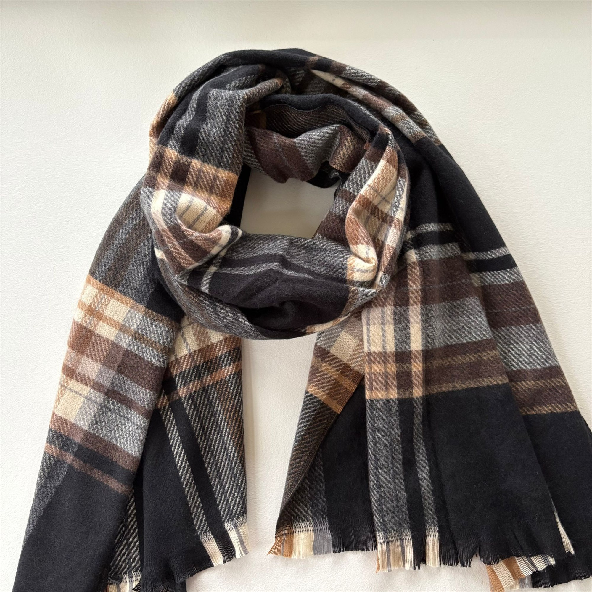 Varenavn: Halstørklæde Ternet Sort/ brun