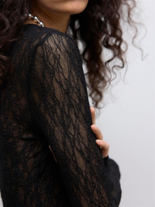 Blonde bluse i sort, perfekt til at have under en T-shirt for at gøre dit outfit mere spændene.