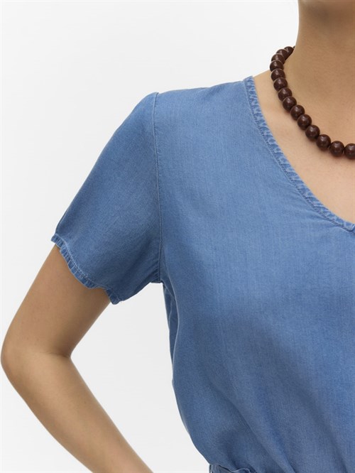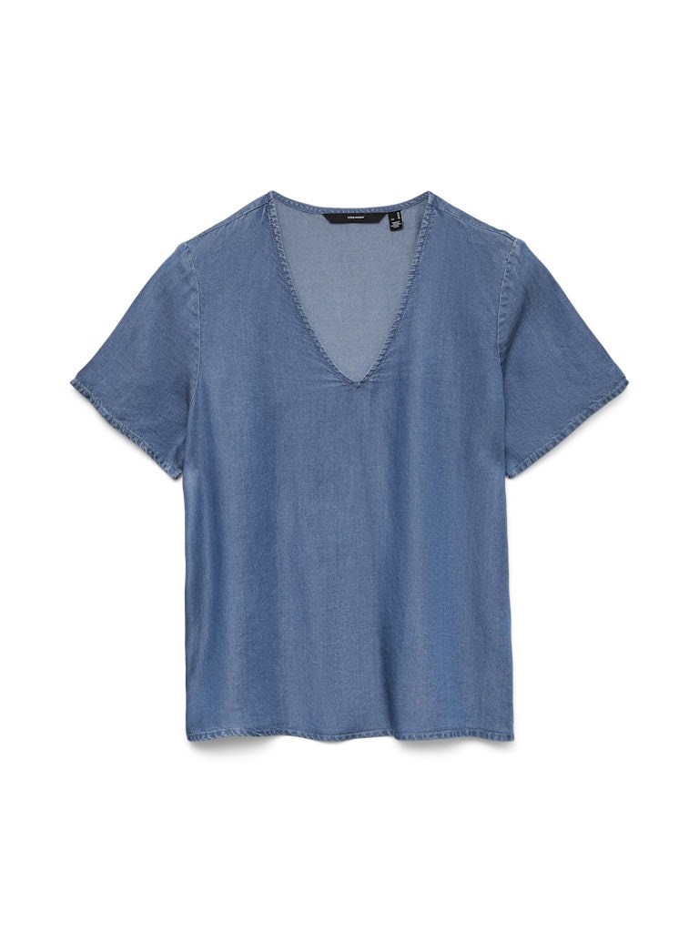VM Bree Kortærmet Bluse, V-hals, Tencel, Blå