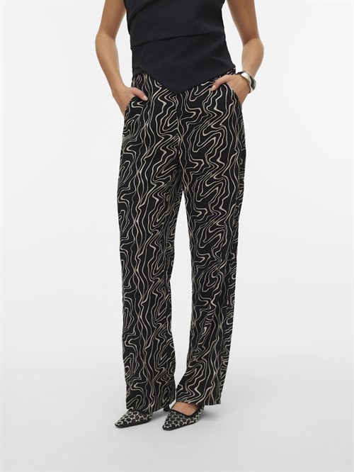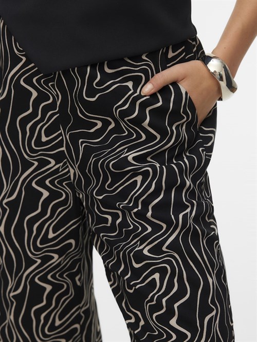 Lækre viskose mønstret bukser med vidde ben og elastik i taljen. Style dem for sig selv, elle sæt dem sammen med den matchene T-shirt.