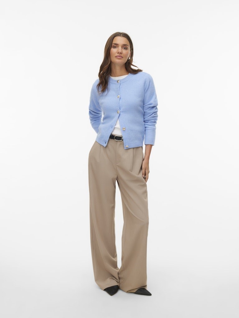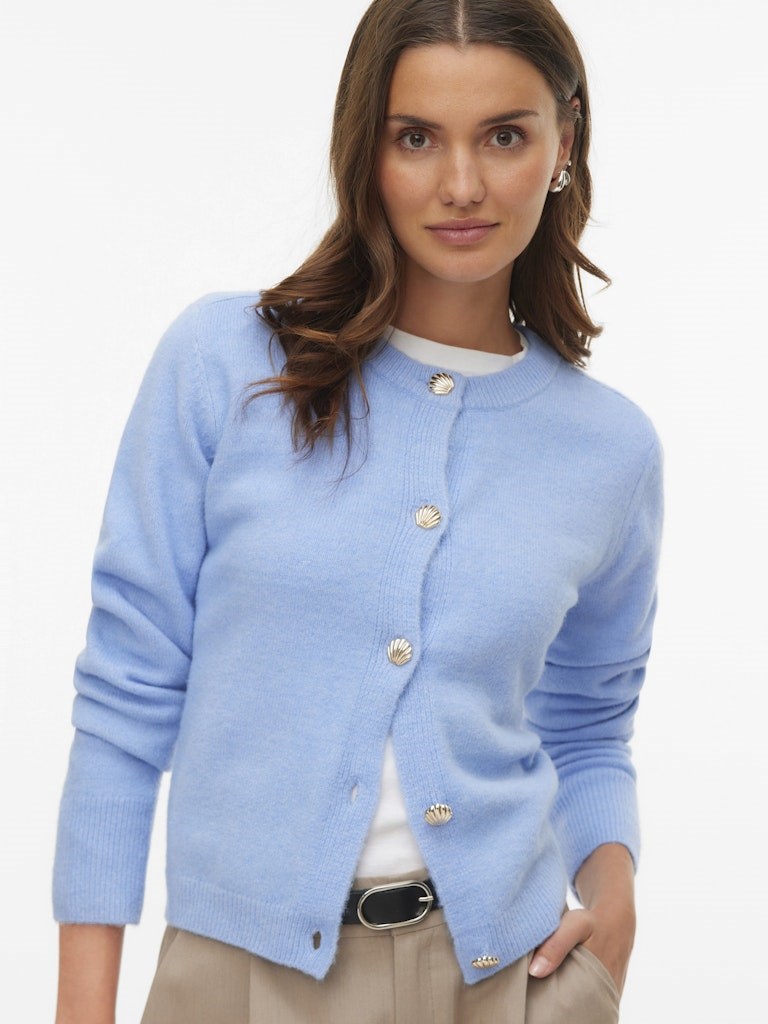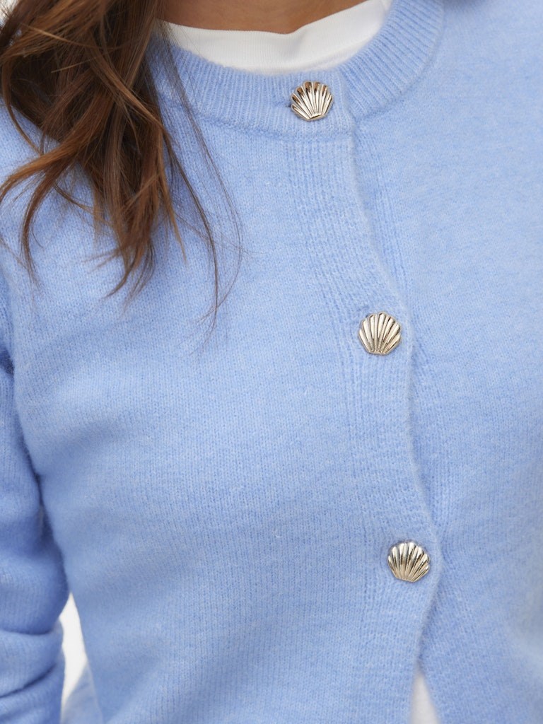 VM Fiona Strik Cardigan med Muslinge Sølv knapper, Lys Blå