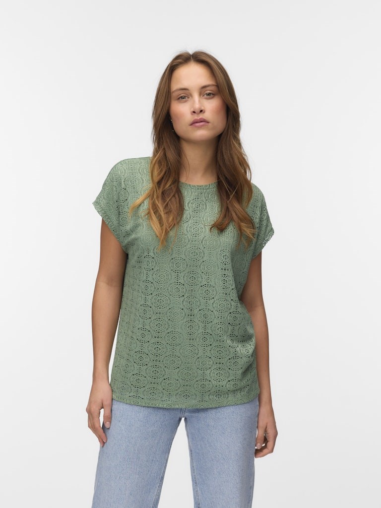 Denne feminine Maya Ava T-shirt fra Vero Moda er med et flot hulmønster. Den har en rund hals og korte ærmer, hvilket gør den perfekt til varme dage. Toppen er lavet i en blød blanding af polyester og elasthan, som giver en god pasform og komfort. Den fås i flere farver og er ideel til både hverdag og fest, hvor du ønsker et let og elegant look.