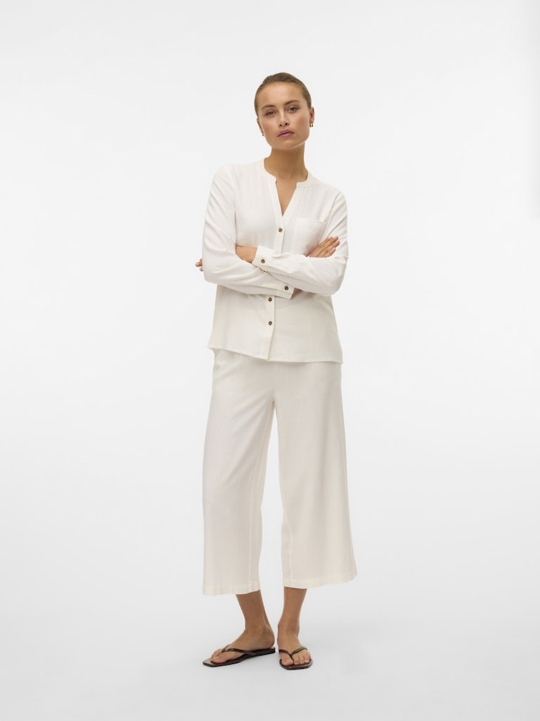 Culotte bukser hør og viskose. Bukserne har elastik bag til og bredde ben.