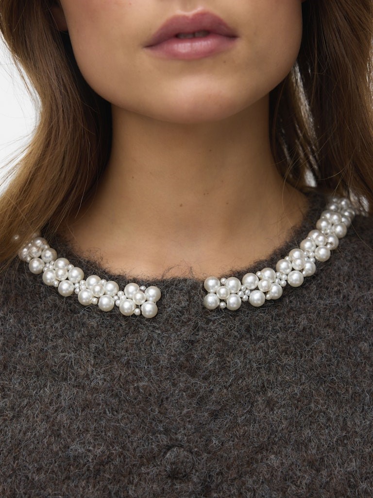 Lækker strik Cardigan med korte ærmer og flot perle krave. Kan peppe et hvert outfit op.