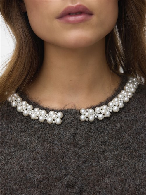 VM Ocean Strik Cardigan med 2/4 Ærme og Perler, Brun Melange