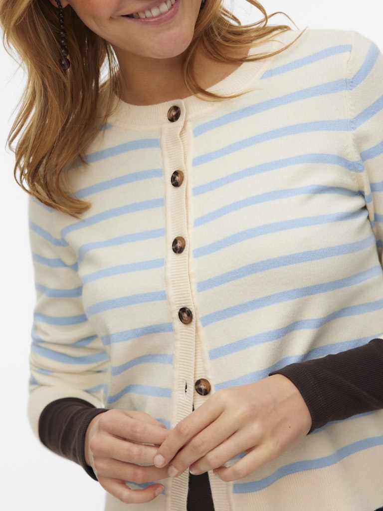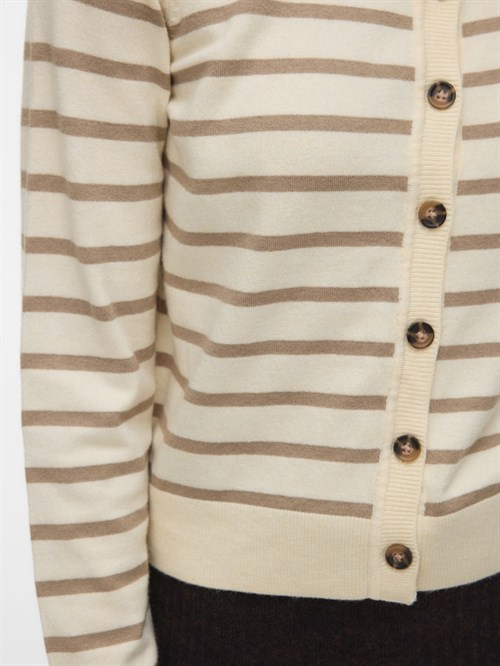 Lækre bløde cardigans med striber og knapper hele vejen ned. Super flot lukket som bluse, eller åben over en t-shirt eller lignende.