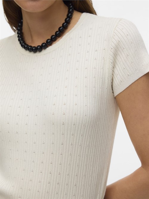 VM Silje T-shirt med hulmønster, rund hals, Hvid