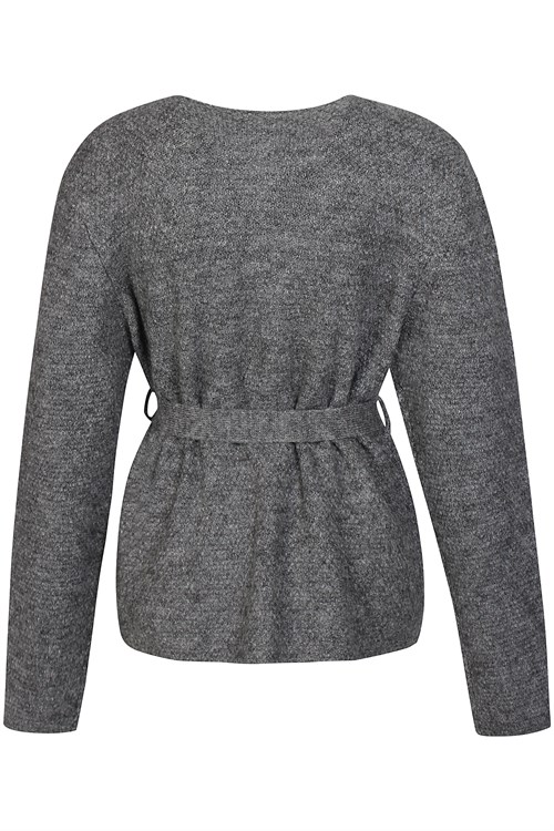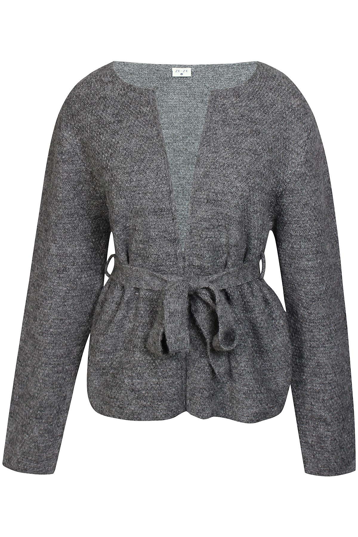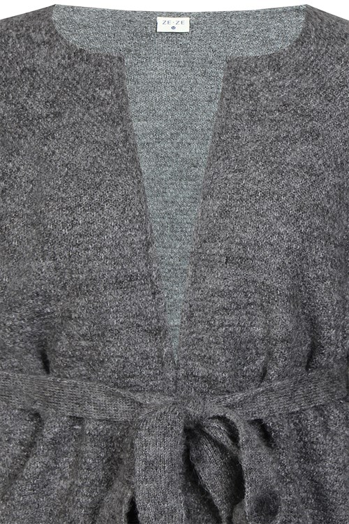 Ze-Ze Amy Strik Cardigan med Bindebånd, Grå