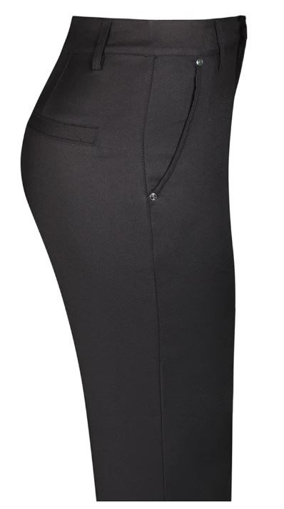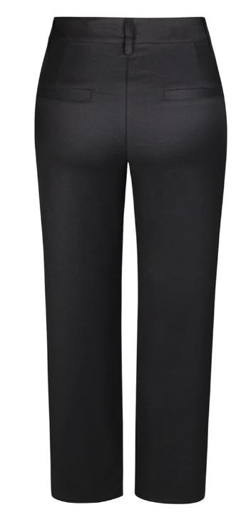 Ruby 914 er elegante sorte bukser i et tidløst design – perfekte til både kontoret og hverdagens mere formelle anledninger. Den lige pasform giver et flot fald, og de diskrete forlommer samt bæltestropper tilfører funktionelle detaljer, uden at det går ud over det stilrene look.